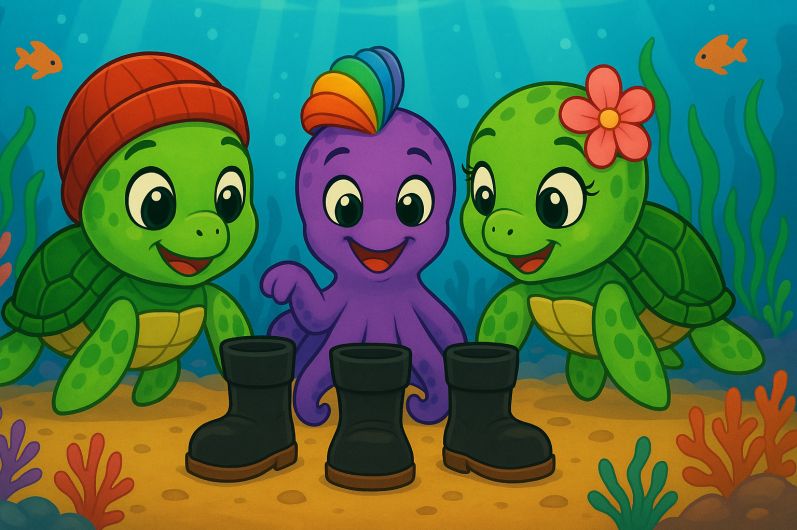 Dort sitzt Flitzi die Hafenkrake – und neben ihm steht Fini’s Stiefel.